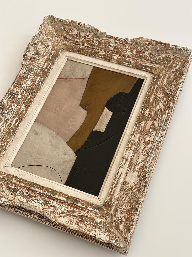 All frames retain typical marks due to their age, which adds character to the piece and accentuates the passage of time while surrounding the newly created painting. Together, the past embraces the present in one cohesive expression.