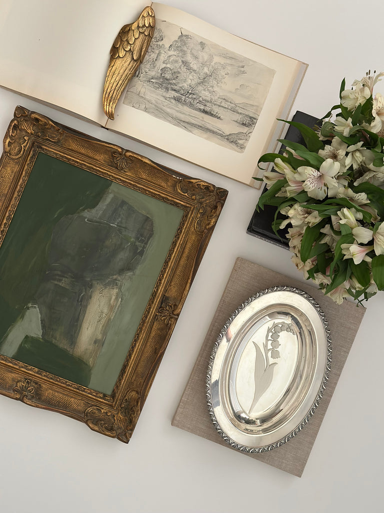 This original, hand crafted and one-of-one piece of art from Amanda Carol Collection is housed in a 16.25”W x 19.5”H VINTAGE* Ornate Pierced Gilt frame circa 1950 from France. A certificate of authenticity is included with each piece.