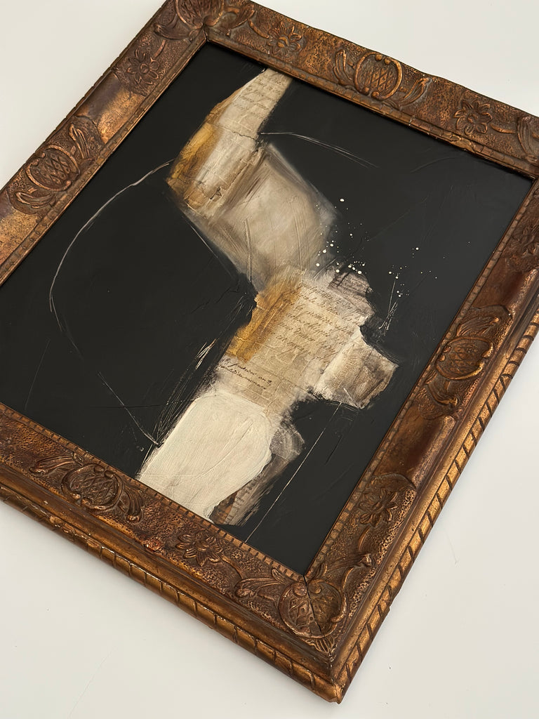 All frames retain typical marks due to their age, which adds character to the piece and accentuates the passage of time while surrounding the newly created painting. Together, the past embraces the present in one cohesive expression.