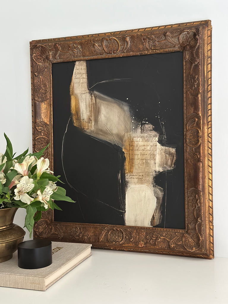This original, hand crafted and one-of-one piece of art from Amanda Carol Collection is housed in a 20”W x 23”H ANTIQUE* Carved Gilt frame circa 1900 from France. A certificate of authenticity is included with each piece.