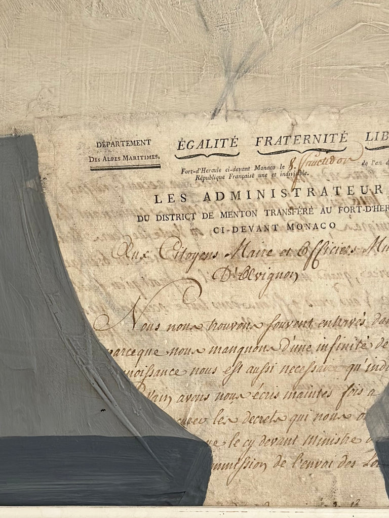 Plaster, Acrylic, Ink, Collage with Antique Letters & book pages