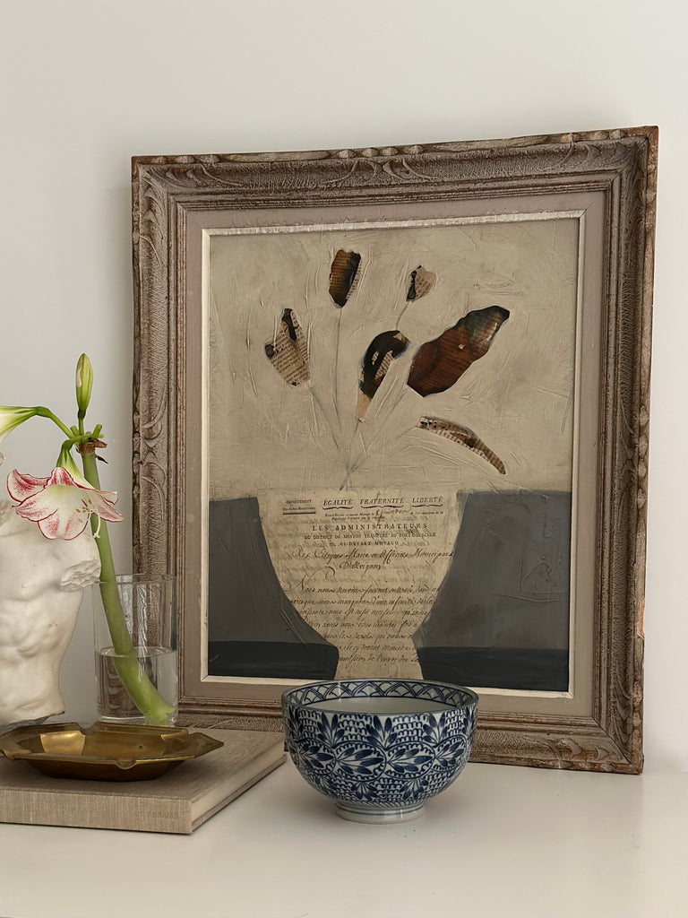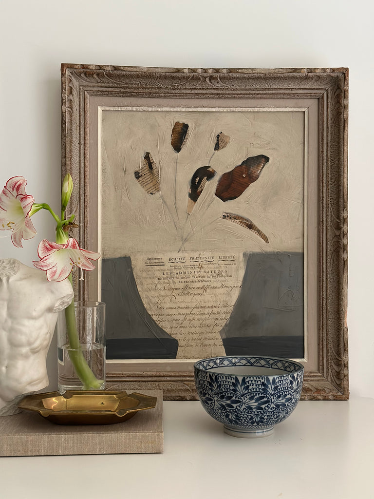 This original, hand crafted and one-of-one piece of art from Amanda Carol Collection is housed in a 19.75”W x 23”H VINTAGE* Montparnasse frame circa 1940 from France. A certificate of authenticity is included with each piece.
