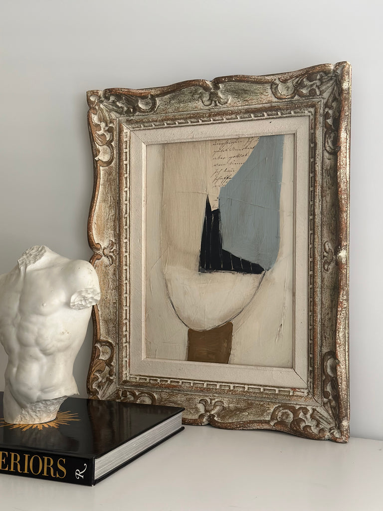 This original, hand crafted and one-of-one piece of art from Amanda Carol Collection is housed in a 15.25”W x 19”H VINTAGE* Ornate Montparnasse frame circa 1940 from France.  A certificate of authenticity is included with each piece.