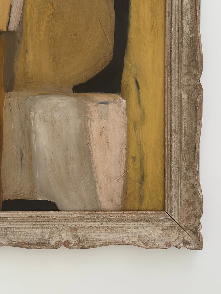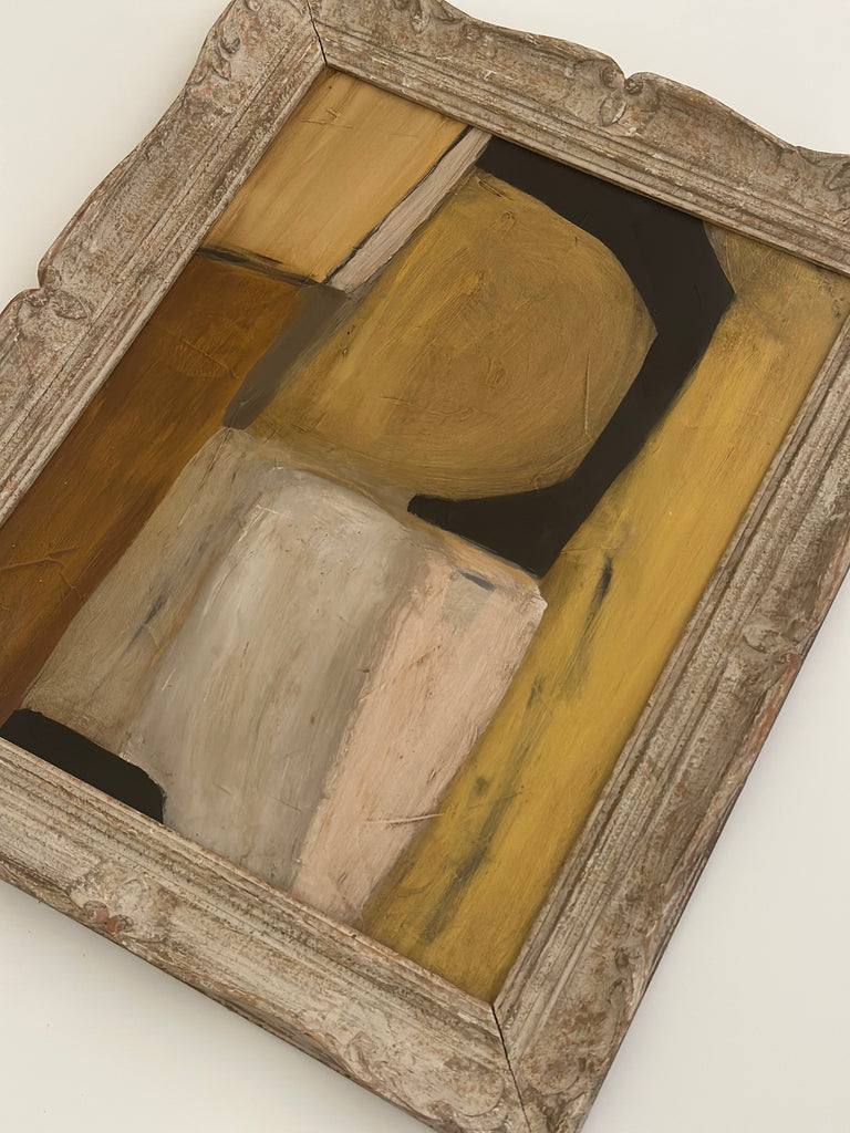 All frames retain typical marks due to their age, which adds character to the piece and accentuates the passage of time while surrounding the newly created painting. Together, the past embraces the present in one cohesive expression.