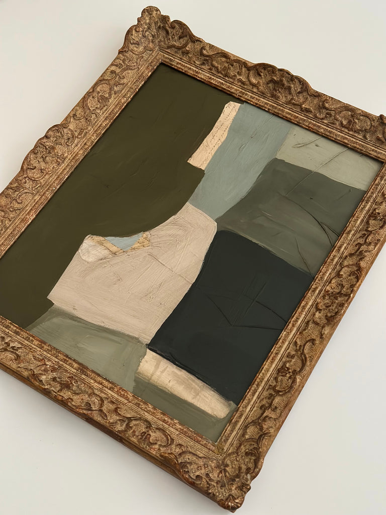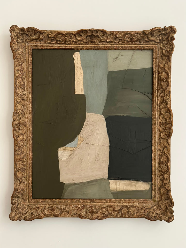 All frames retain typical marks due to their age, which adds character to the piece and accentuates the passage of time while surrounding the newly created painting. Together, the past embraces the present in one cohesive expression.