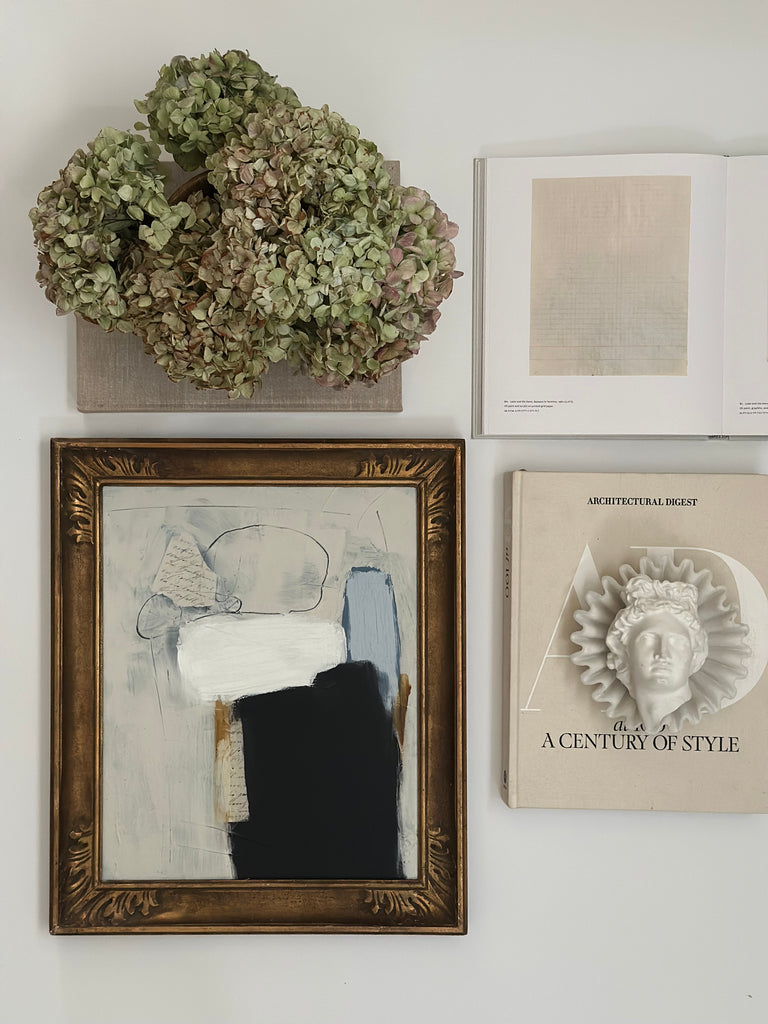 All frames retain typical marks due to their age, which adds character to the piece and accentuates the passage of time while surrounding the newly created painting. Together, the past embraces the present in one cohesive expression.