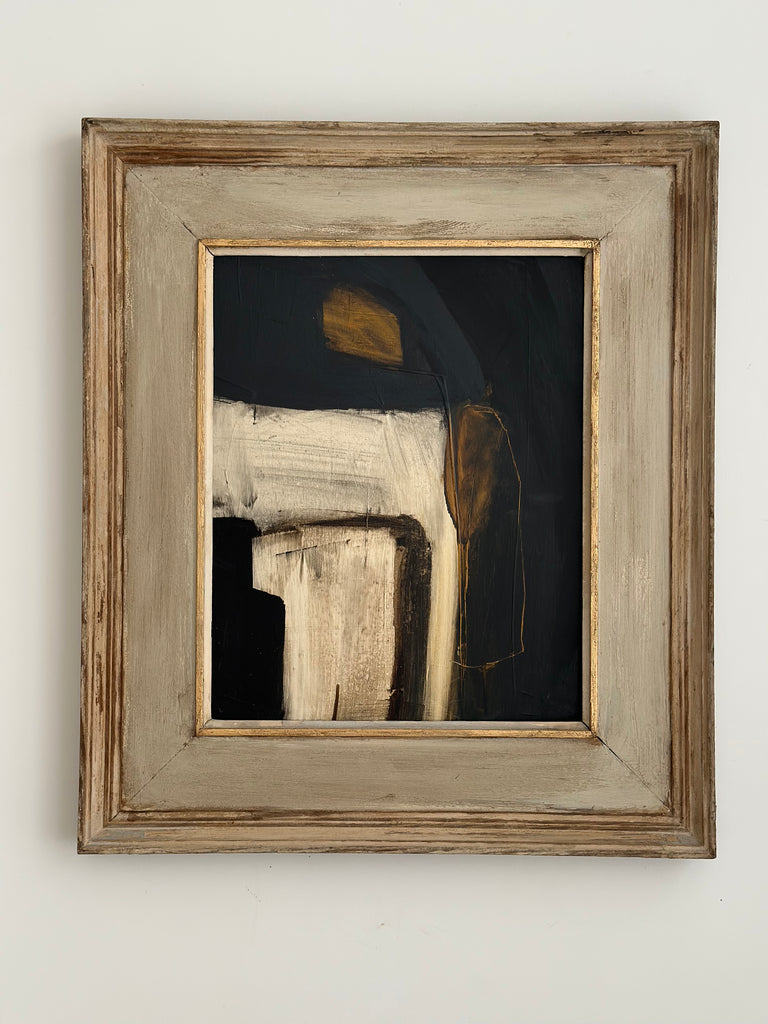 All frames retain typical marks due to their age, which adds character to the piece and accentuates the passage of time while surrounding the newly created painting. Together, the past embraces the present in one cohesive expression.