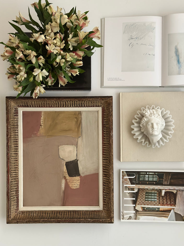 All frames retain typical marks due to their age, which adds character to the piece and accentuates the passage of time while surrounding the newly created painting.  Together, the past embraces the present in one cohesive expression.