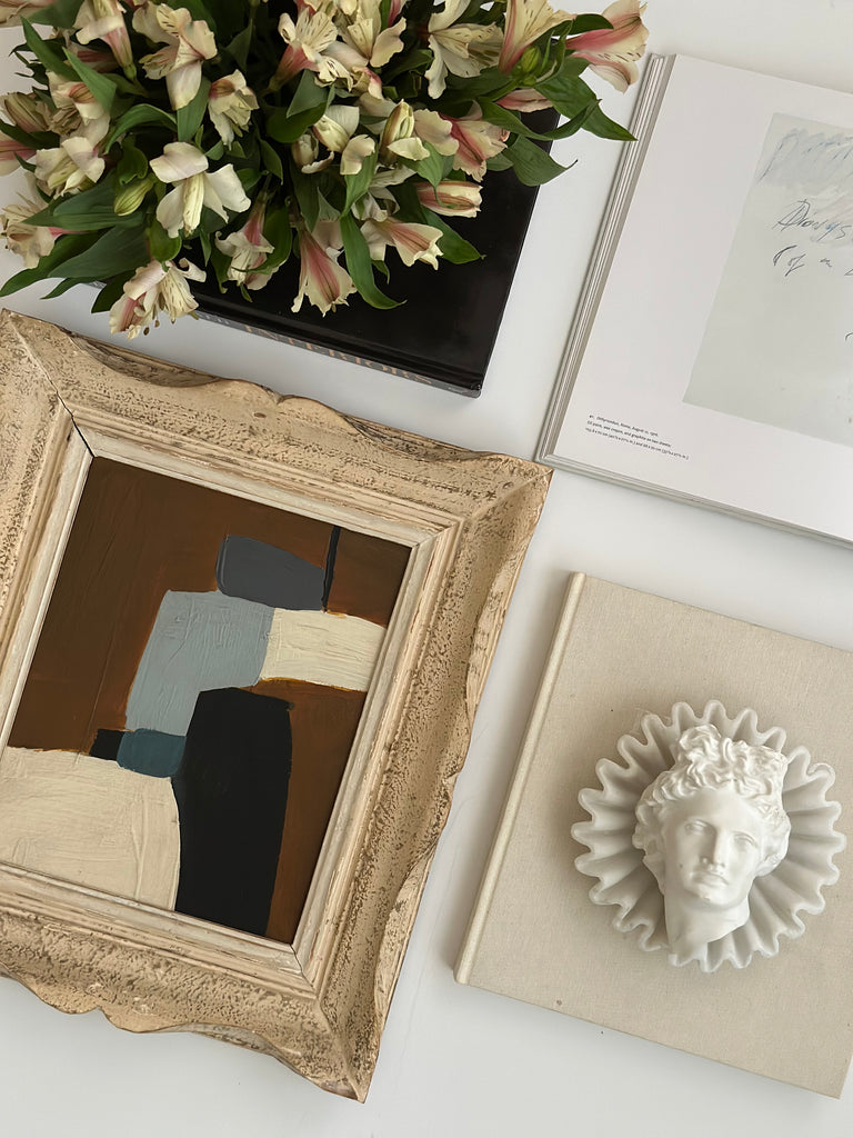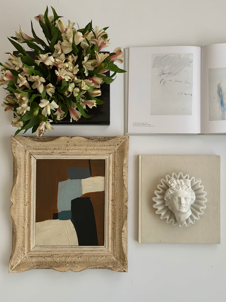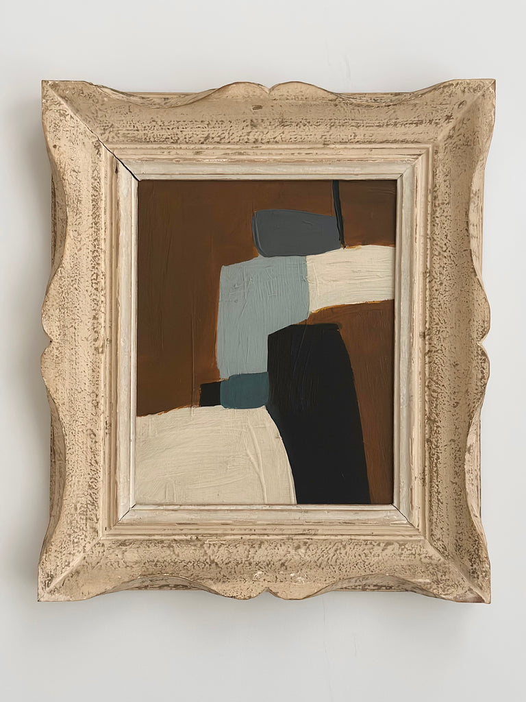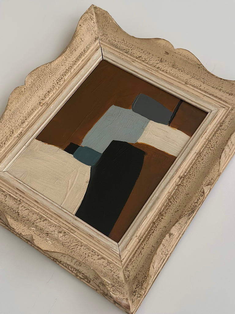 All frames retain typical marks due to their age, which adds character to the piece and accentuates the passage of time while surrounding the newly created painting. Together, the past embraces the present in one cohesive expression.