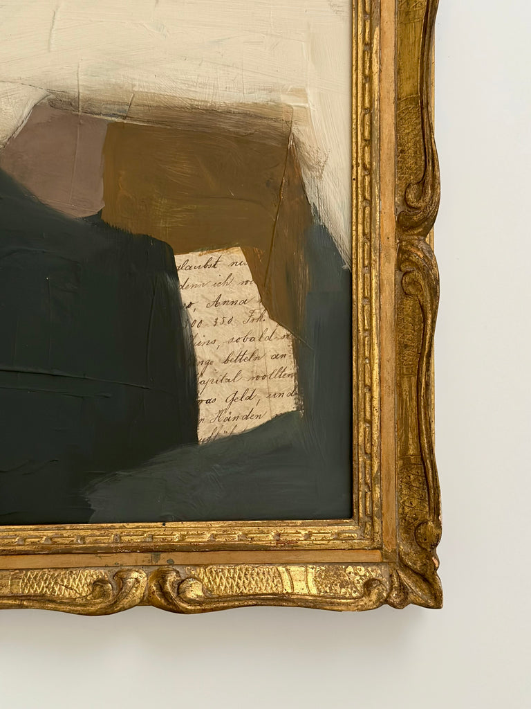 All frames retain typical marks due to their age, which adds character to the piece and accentuates the passage of time while surrounding the newly created painting.  Together, the past embraces the present in one cohesive expression.