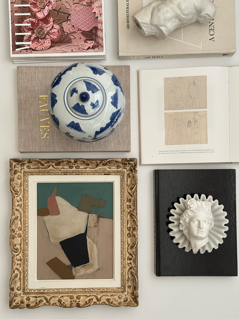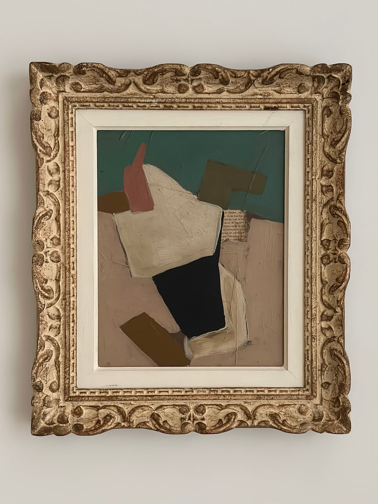 All frames retain typical marks due to their age, which adds character to the piece and accentuates the passage of time while surrounding the newly created painting. Together, the past embraces the present in one cohesive expression.
