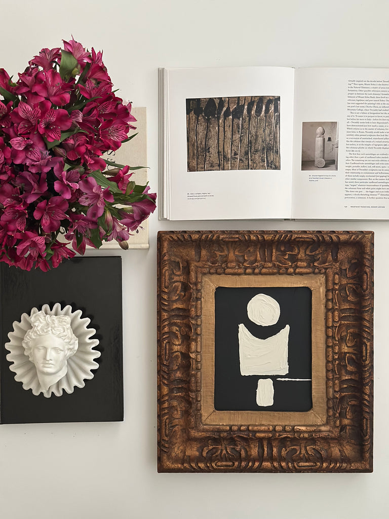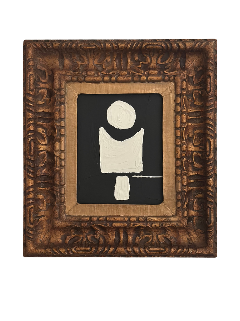 All frames retain typical marks due to their age, which adds character to the piece and accentuates the passage of time while surrounding the newly created painting.  Together, the past embraces the present in one cohesive expression.