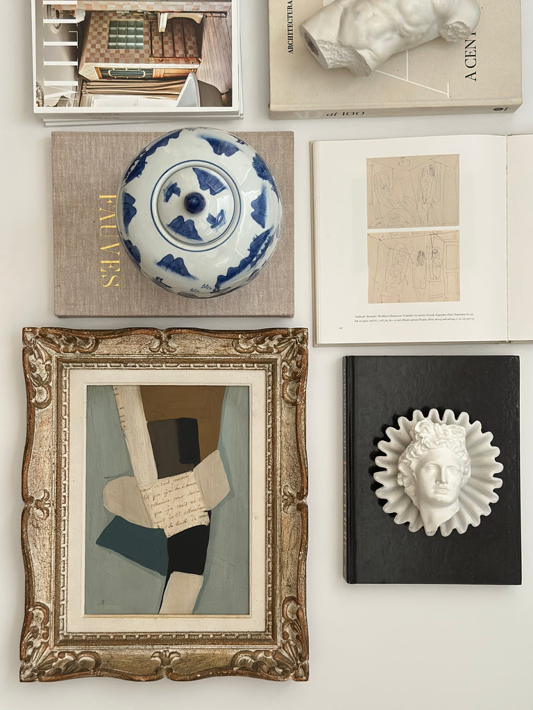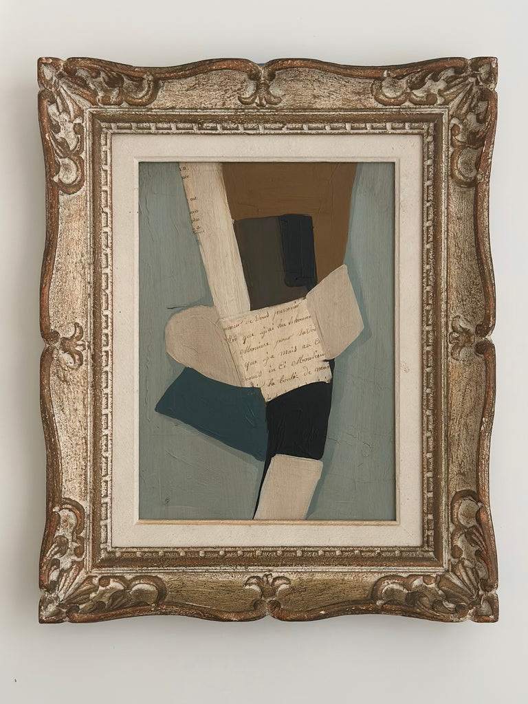 All frames retain typical marks due to their age, which adds character to the piece and accentuates the passage of time while surrounding the newly created painting. Together, the past embraces the present in one cohesive expression.
