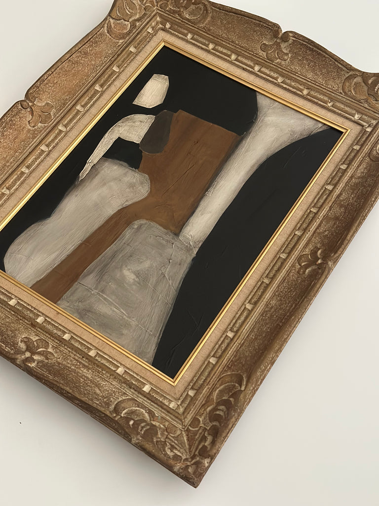 All frames retain typical marks due to their age, which adds character to the piece and accentuates the passage of time while surrounding the newly created painting.  Together, the past embraces the present in one cohesive expression.