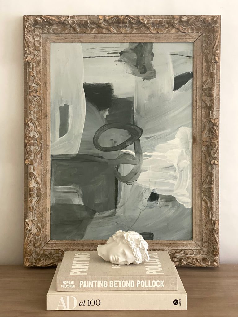 All frames retain typical marks due to their age, which adds character to the piece and accentuates the passage of time while surrounding the newly created painting. Together, the past embraces the present in one cohesive expression.