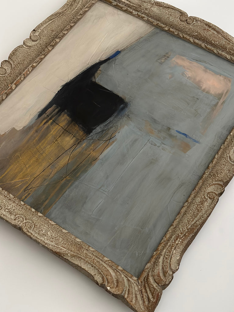 All frames retain typical marks due to their age, which adds character to the piece and accentuates the passage of time while surrounding the newly created painting. Together, the past embraces the present in one cohesive expression.