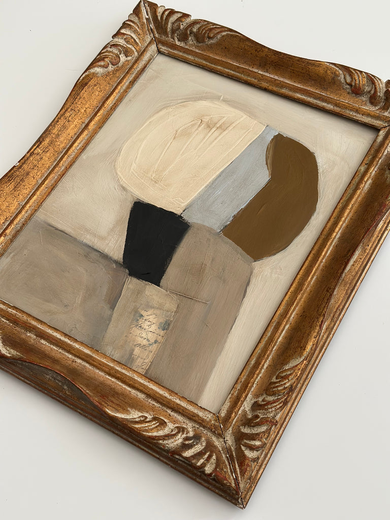 All frames retain typical marks due to their age, which adds character to the piece and accentuates the passage of time while surrounding the newly created painting. Together, the past embraces the present in one cohesive expression.