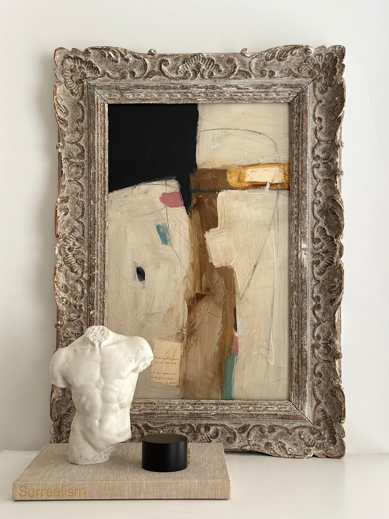 This original, hand crafted and one-of-one piece of art from Amanda Carol Collection is housed in a 22”W x 30.5”H VINTAGE* Ornate Montparnasse frame circa 1950 from France. A certificate of authenticity is included with each piece.