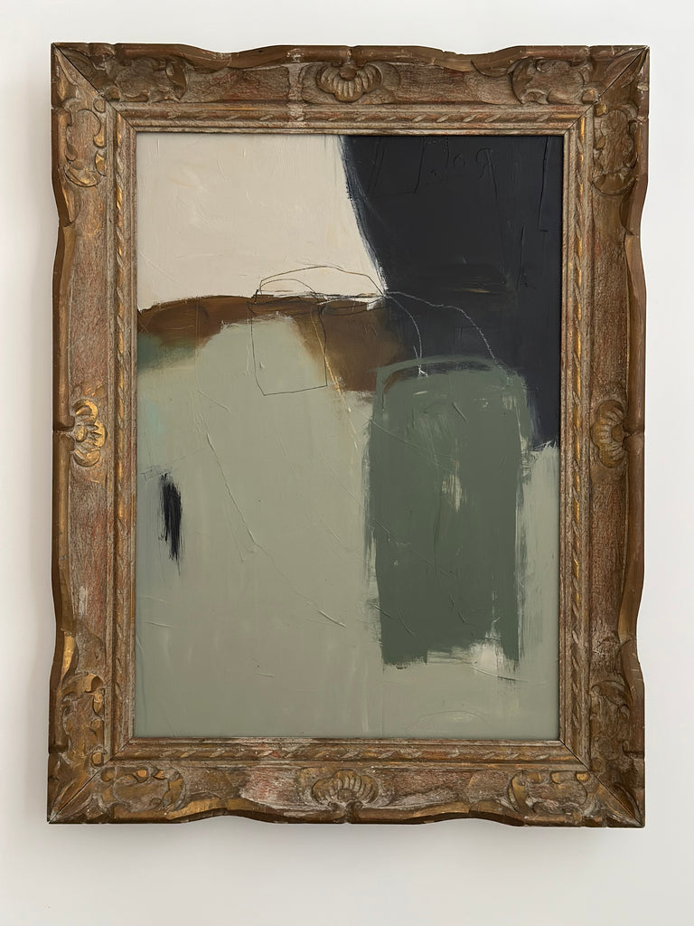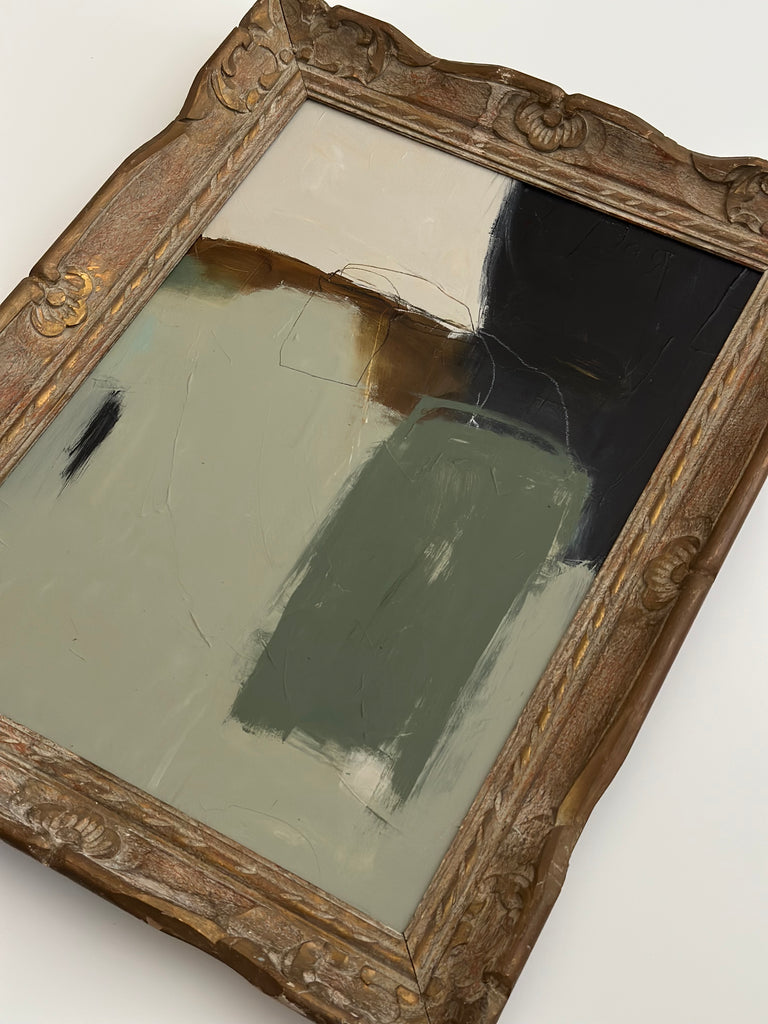 All frames retain typical marks due to their age, which adds character to the piece and accentuates the passage of time while surrounding the newly created painting. Together, the past embraces the present in one cohesive expression.