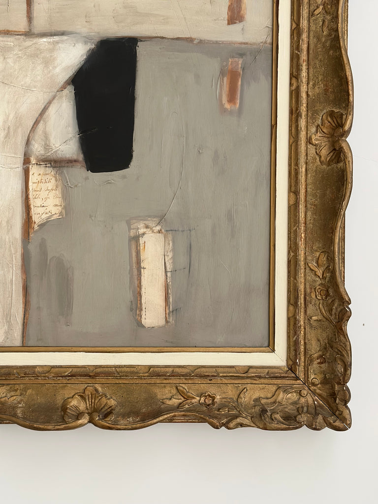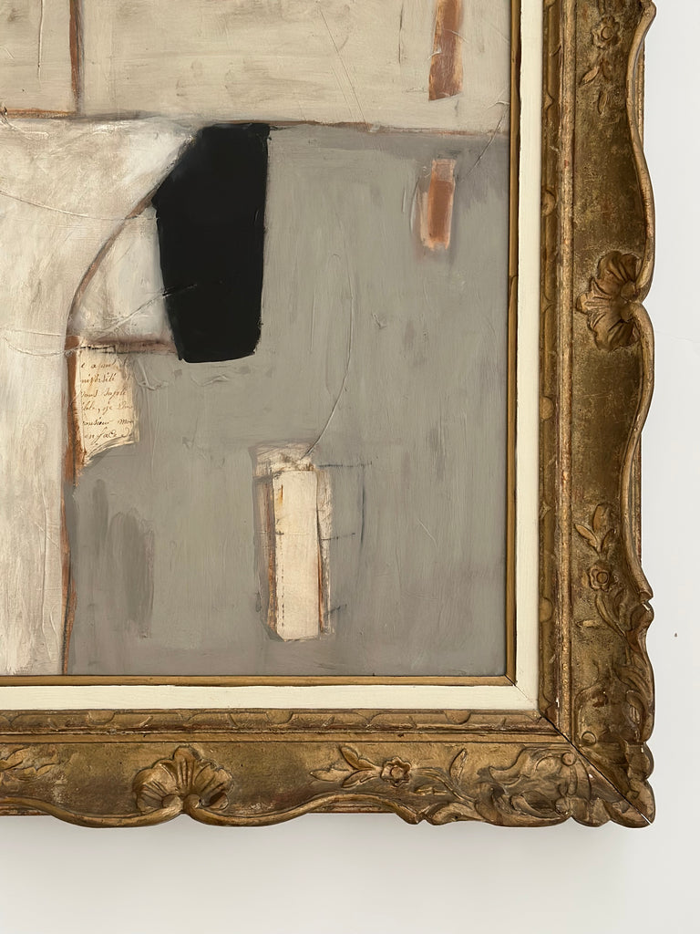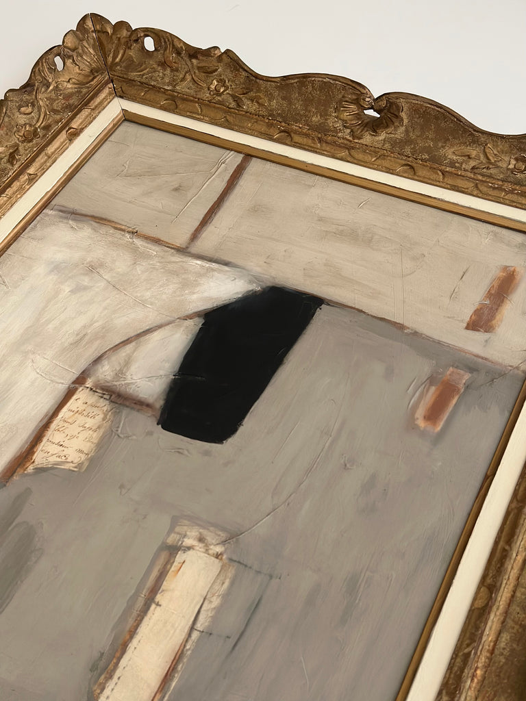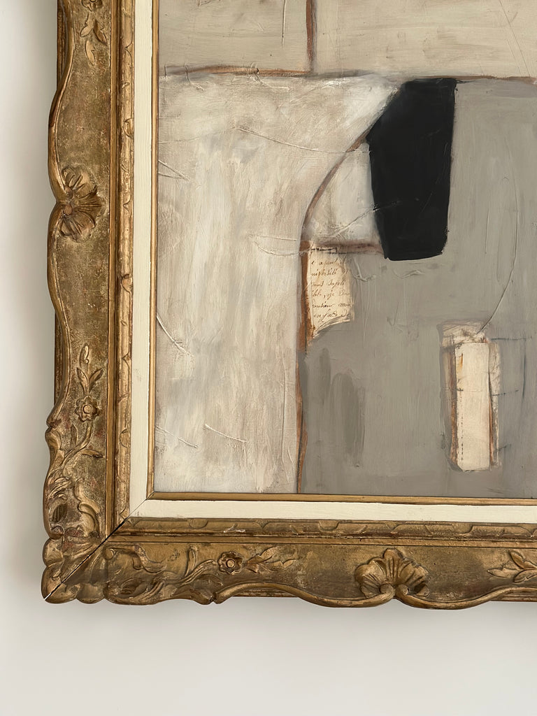 All frames retain typical marks due to their age, which adds character to the piece and accentuates the passage of time while surrounding the newly created painting.  Together, the past embraces the present in one cohesive expression.