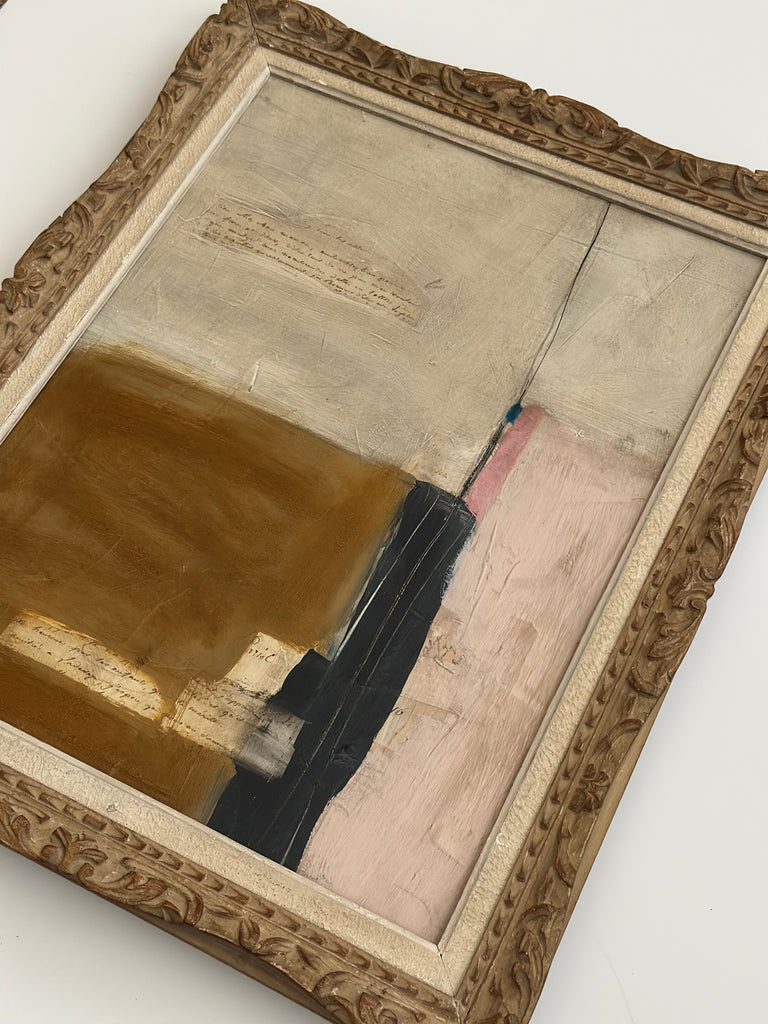 All frames retain typical marks due to their age, which adds character to the piece and accentuates the passage of time while surrounding the newly created painting. Together, the past embraces the present in one cohesive expression.