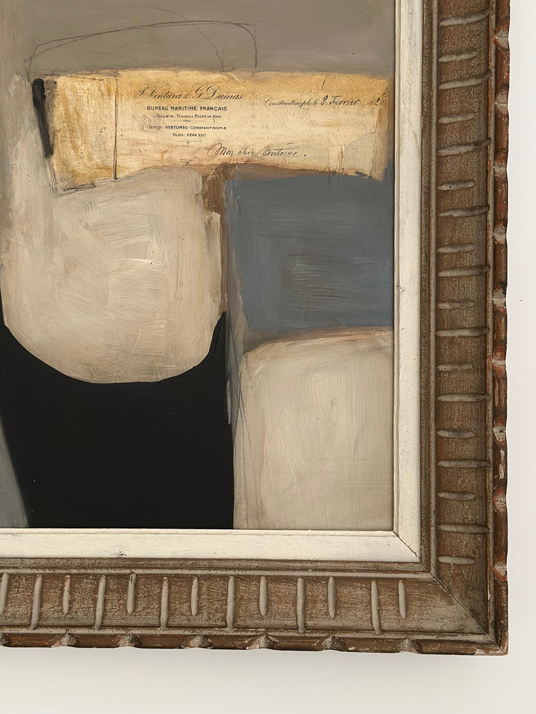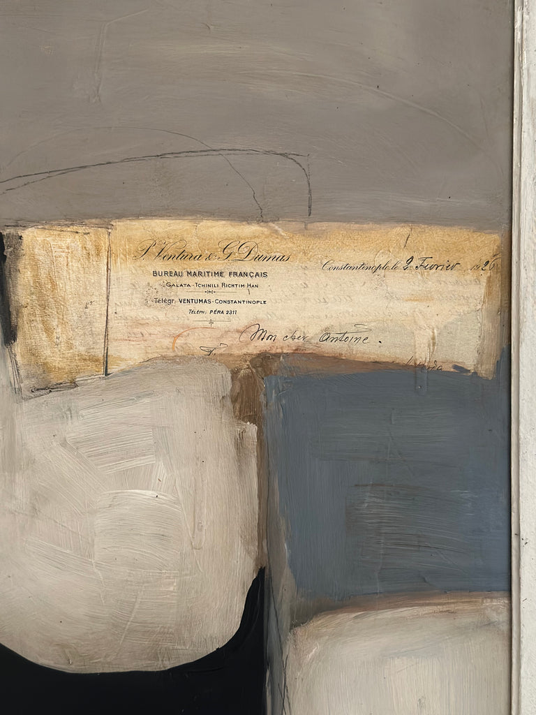 Plaster, Acrylic, Ink, Collage with Antique Hand-written letters