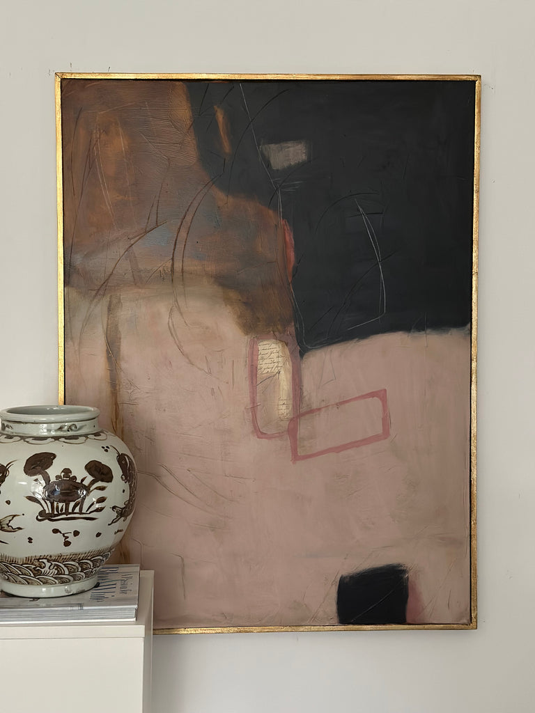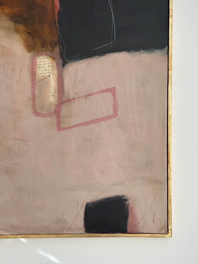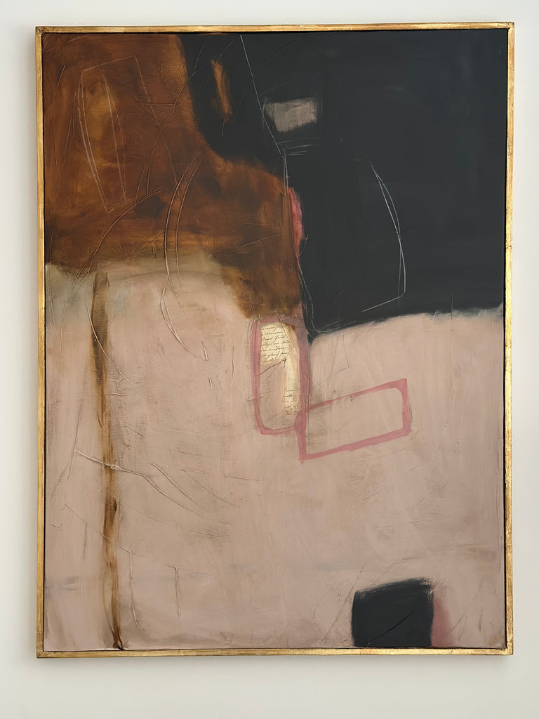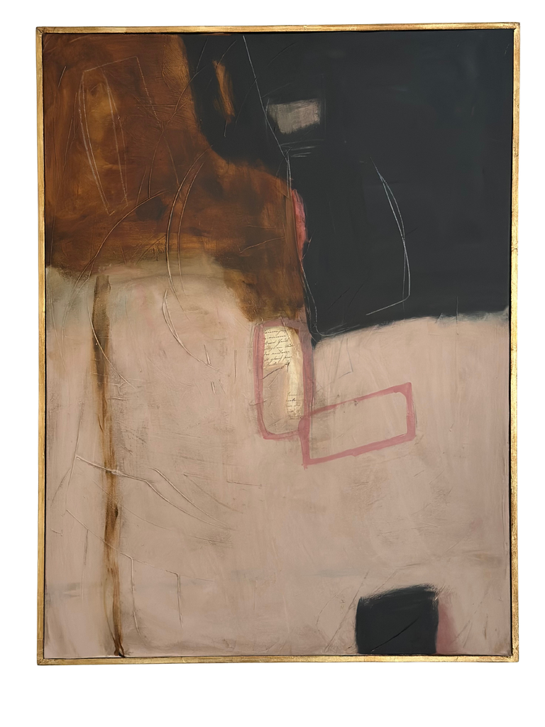 This original, hand crafted and one-of-a-kind piece of art from Amanda Carol Collection is on stretched canvas housed in a hand applied distressed gold leaf float frame. Canvas size is 30”x 40”, with frame 31”x 41”. A certificate of authenticity is included with each piece.