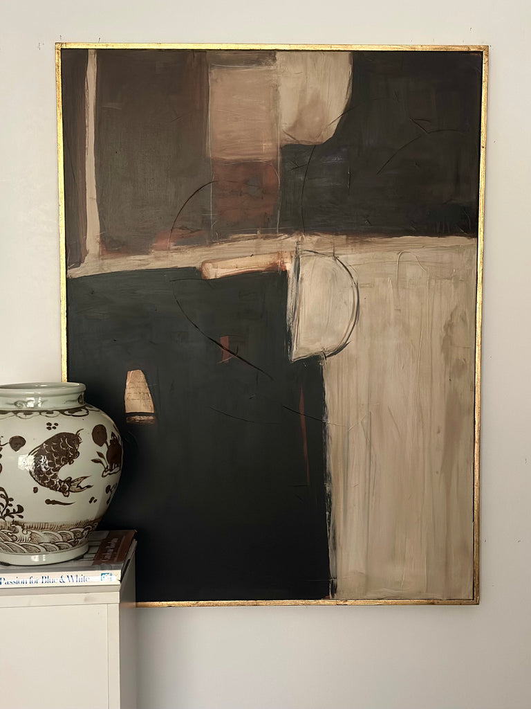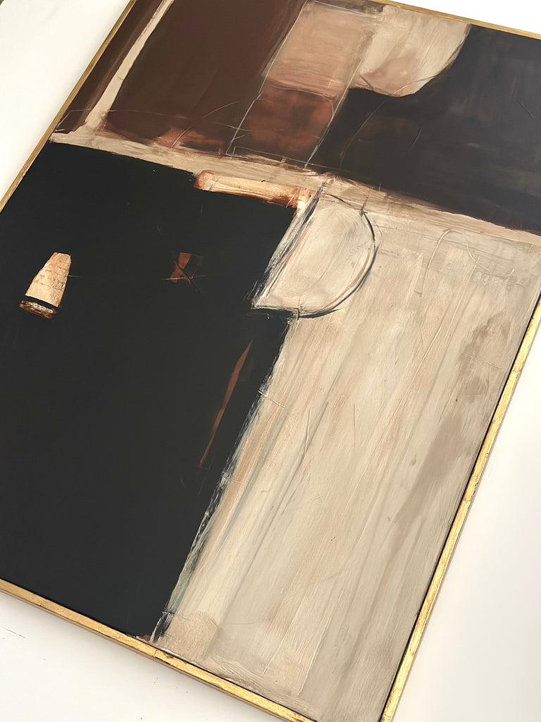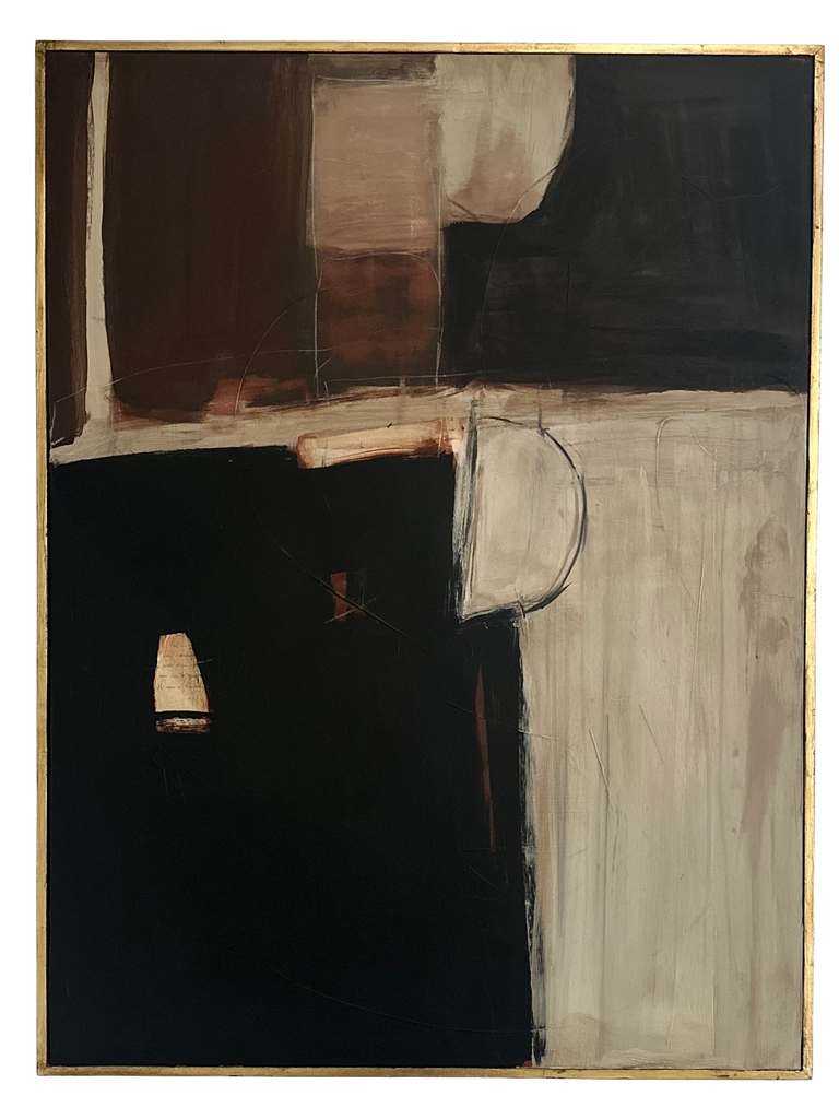 This original, hand crafted and one-of-a-kind piece of art from Amanda Carol Collection is on stretched canvas housed in a hand applied distressed gold leaf float frame. Canvas size is 30”x 40”, with frame 31”x 41”. A certificate of authenticity is included with each piece.