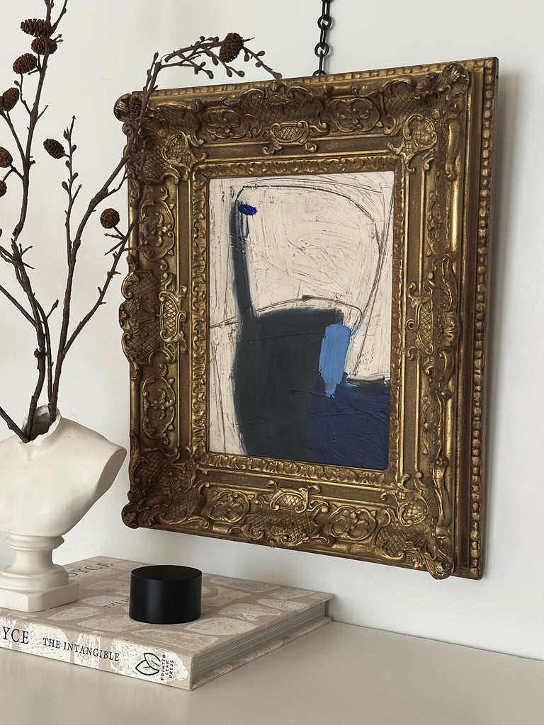 All frames retain typical marks due to their age, which adds character to the piece and accentuates the passage of time while surrounding the newly created painting. Together, the past embraces the present in one cohesive expression.