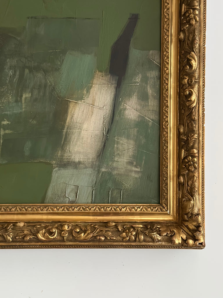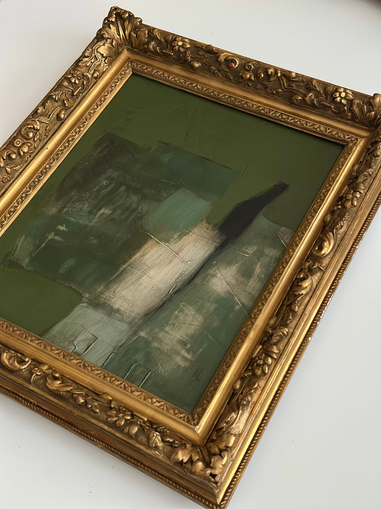 All frames retain typical marks due to their age, which adds character to the piece and accentuates the passage of time while surrounding the newly created painting. Together, the past embraces the present in one cohesive expression.